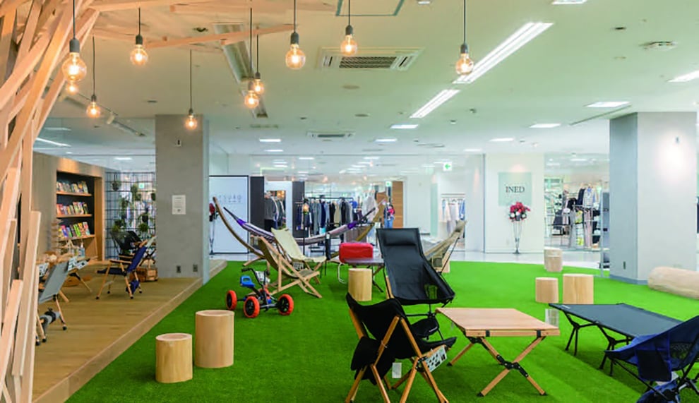 約60坪の人工芝の広場は、普段は憩いのスペースとして自由に利用できます。週末を中心に赤ちゃんハイハイレースやモノづくり体験など、こどもと一緒に楽しめるイベントが開催されます。